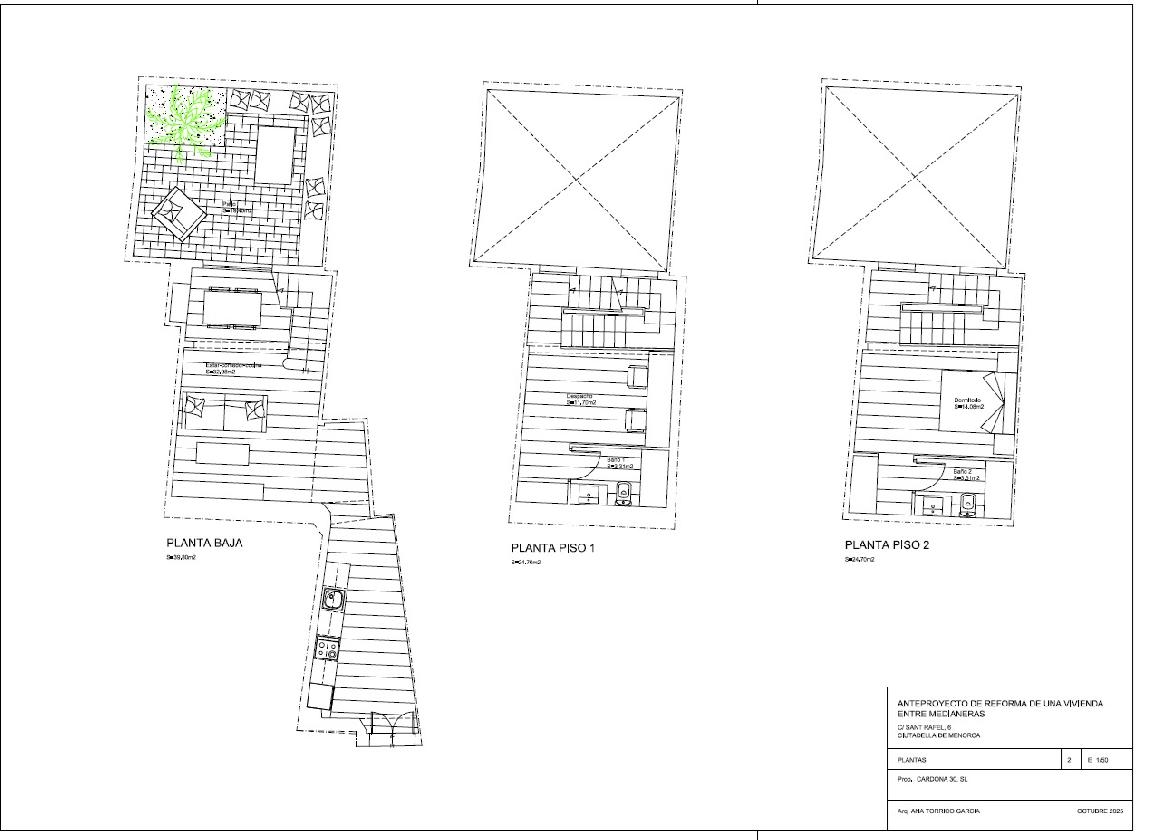 El valor diferencial de esta propiedad reside en su espectacular patio posterior, un espacio de generosas dimensiones (aprox. 5,90 m de fondo) proyectado para convertirse en un verdadero oasis mediterráneo. El anteproyecto transforma la vivienda en un hogar íntimo y funcional de tres plantas, donde cada rincón está optimizado: