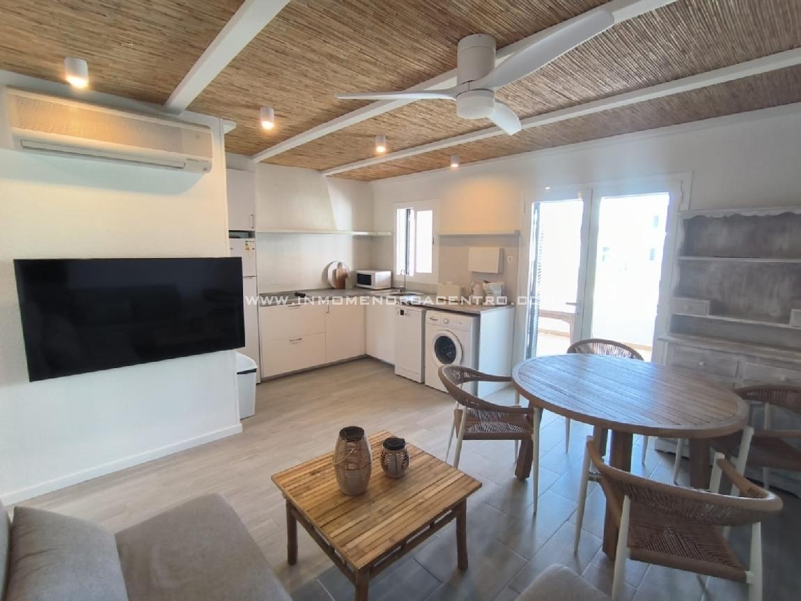 Discover this charming apartment in the Calan Bosch area, perfect for those seeking comfort and light in a peaceful setting. With a surface area of 64 square meters, this home features two spacious bedrooms and a full bathroom, ideal for families or couples who value space and functionality. The property is fully furnished and has a fully equipped and furnished kitchen, ready to move into. It also boasts excellent exterior views and a terrace perfect for enjoying the beautiful weather and spending time outdoors. Among its amenities is the air conditioning, which guarantees a pleasant temperature in any season. A unique opportunity to live in a privileged setting, with all the amenities at your fingertips. And also a communal pool.