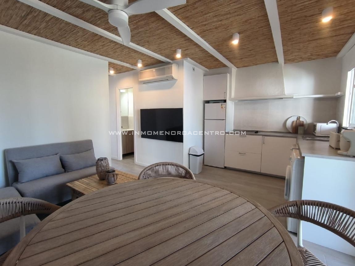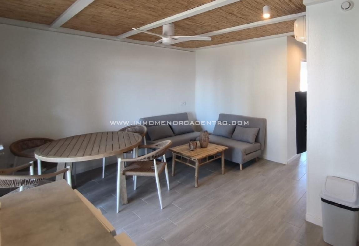 Discover this charming apartment in the Calan Bosch area, perfect for those seeking comfort and light in a peaceful setting. With a surface area of 64 square meters, this home features two spacious bedrooms and a full bathroom, ideal for families or couples who value space and functionality. The property is fully furnished and has a fully equipped and furnished kitchen, ready to move into. It also boasts excellent exterior views and a terrace perfect for enjoying the beautiful weather and spending time outdoors. Among its amenities is the air conditioning, which guarantees a pleasant temperature in any season. A unique opportunity to live in a privileged setting, with all the amenities at your fingertips. And also a communal pool.